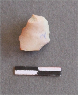 | Description / विवरण | It s a chert flake with a bulb of percussion and sharp edges. A small backing platform is in place. |