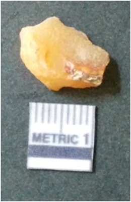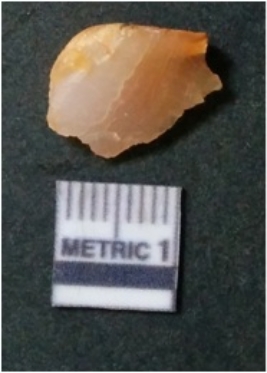 | Description / विवरण | It is chalcedony flake, translucent in appearance. The piece shows sharp pointed ends and flake scars on the surface as a result of flaking. The piece shows a bulb of percussion. |