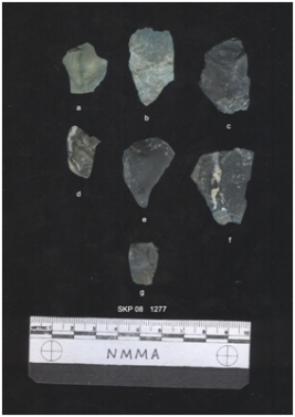 | Description / विवरण | It is a jasper flake with sharp edges and striking platform on the proximal end. Flakes scars on the surface with ripples on it. |