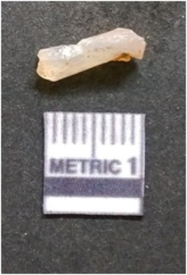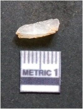 | Description / विवरण | The chalcedony flake is pale in color and translucent in appearance. The piece has s harp flaked ends and a bulbous end due to flaking. The flake has a crypto-crystalline silica matrix. |