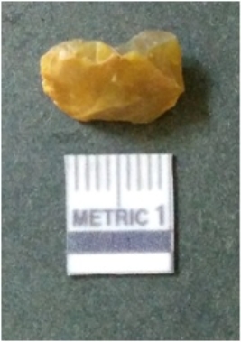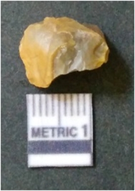 | Description / विवरण | It is chalcedony flake, translucent in appearance. The piece shows sharp pointed ends and flake scars on the surface as a result of flaking. The piece shows a bulb of percussion. |