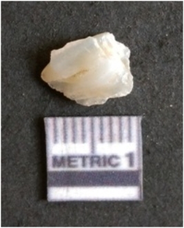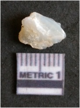 | Description / विवरण | The chalcedony flake is pale in color and translucent in appearance. The piece has s harp flaked ends and a bulbous end due to flaking. The flake has a crypto-crystalline silica matrix. |