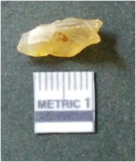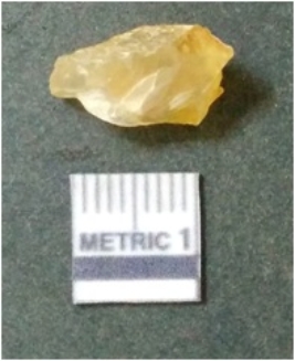 | Description / विवरण | It is chalcedony flake, translucent in appearance. The piece shows sharp pointed ends and flake scars on the surface as a result of flaking. The piece shows a bulb of percussion. |