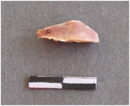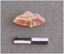 | Description / विवरण | It s a carnelian flake with a pointed end and sharp edges. |