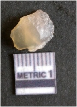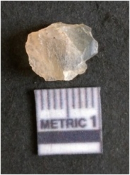 | Description / विवरण | The chalcedony flake is pale in color and translucent in appearance. The piece has s harp flaked ends and a bulbous end due to flaking. The flake has a crypto-crystalline silica matrix. |
