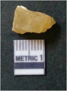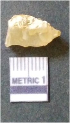 | Description / विवरण | It is chalcedony flake, translucent in appearance. The piece shows sharp pointed ends and flake scars on the surface as a result of flaking. The piece shows a bulb of percussion. |