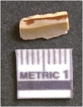 | Description / विवरण | The chert flake has a clear striking platform and ripple marks on the surface as a result of flaking. The piece is smooth, with regular fracture pattern and matt finish on the surface with a prominent bulb of percussion and sharp flaked edges. |
