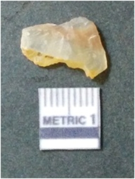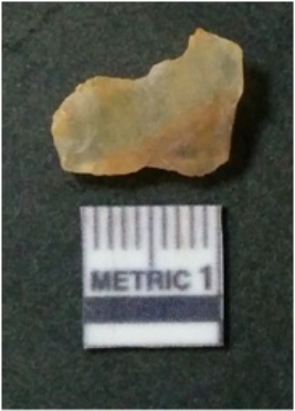 | Description / विवरण | It is chalcedony flake, translucent in appearance. The piece shows sharp pointed ends and flake scars on the surface as a result of flaking. The piece shows a bulb of percussion. |