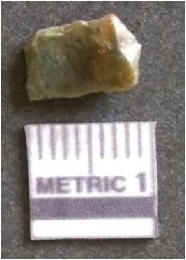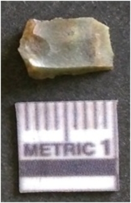 | Description / विवरण | The chert flake has a clear striking platform and ripple marks on the surface as a result of flaking. The piece is smooth, with regular fracture pattern and matt finish on the surface with a prominent bulb of percussion and sharp flaked edges. |