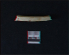 | Description / विवरण | It is a circlet. It is white in colour and is unfinished. It is roughly rectangular squarish in cross - section. The soil incrustations are clearly seen on the surface. |