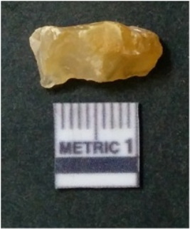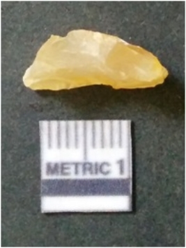 | Description / विवरण | It is chalcedony flake, translucent in appearance. The piece shows sharp pointed ends and flake scars on the surface as a result of flaking. The piece shows a bulb of percussion. |