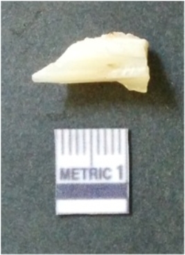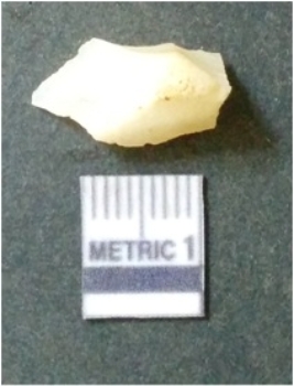 | Description / विवरण | The quartz flake has sharp flaked edges and pointed ends as a result of flaking. The piece is semi-transparent in nature with irregular fracture pattern. The piece is roughly triangular in shape and has a prominent bulb of percussion. |