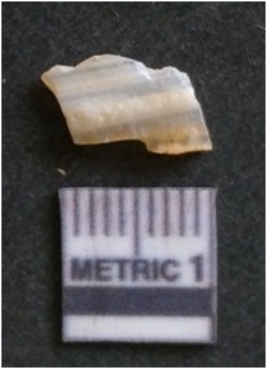 | Description / विवरण | The banded agate piece is crypto-crystalline in nature, with clear visible bands as a part of its natural formation. the piece has s harp flaked edges and flake scars on the surface. |
