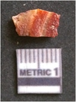 | Description / विवरण | The banded agate piece is crypto-crystalline in nature, with clear visible bands as a part of its natural formation. the piece has s harp flaked edges and flake scars on the surface. |