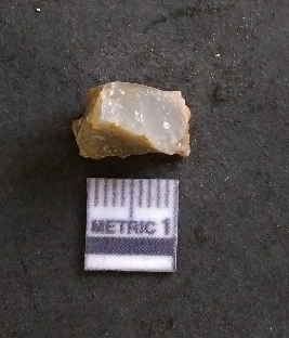 | Description / विवरण | It is a chalcedony flake, with a bulb of percussion on the ventral side. Cortex on one end. |