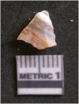 | Description / विवरण | The banded agate piece is crypto-crystalline in nature, with clear visible bands as a part of its natural formation. the piece has s harp flaked edges and flake scars on the surface. |