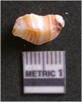 | Description / विवरण | The banded agate piece is crypto-crystalline in nature, with clear visible bands as a part of its natural formation. the piece has s harp flaked edges and flake scars on the surface. |