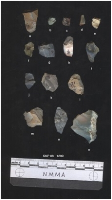 | Description / विवरण | It is a chert flake, with a striking platform, cortex on one end; there are many flake scars with ripples on it. |