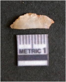 | Description / विवरण | The chalcedony flake is pale in color and translucent in appearance. The piece has s harp flaked ends and a bulbous end due to flaking. The flake has a crypto-crystalline silica matrix. |
