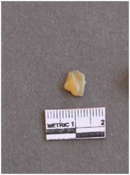 | Description / विवरण | It s a chalcedony fragment, with a bulb of percussion on the ventral side. |