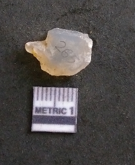 | Description / विवरण | It is a quartz flake. Very cryptocrystalline. Flakes scar on the surface with ripples on it. |