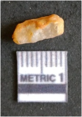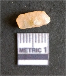 | Description / विवरण | The chalcedony flake is pale in color and translucent in appearance. The piece has s harp flaked ends and a bulbous end due to flaking. The flake has a crypto-crystalline silica matrix. |