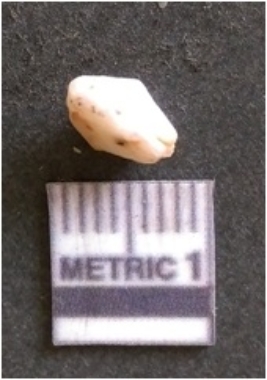 | Description / विवरण | The flake has irregular fracture pattern and sharp flaked edges as a result of lithic knapping activity. The piece is pale, with surface flake scars and a bulbous end. The quartz flake is glassy, and transparent. |