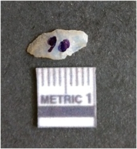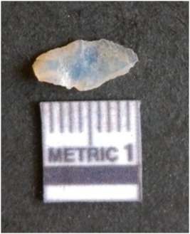 | Description / विवरण | The chalcedony flake is pale in color and translucent in appearance. The piece has s harp flaked ends and a bulbous end due to flaking. The flake has a crypto-crystalline silica matrix. |