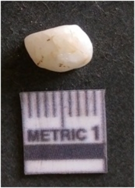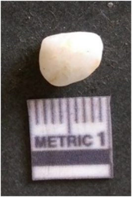 | Description / विवरण | The flake has irregular fracture pattern and sharp flaked edges as a result of lithic knapping activity. The piece is pale, with surface flake scars and a bulbous end. The quartz flake is glassy, and transparent. |