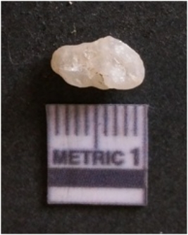 | Description / विवरण | The flake has irregular fracture pattern and sharp flaked edges as a result of lithic knapping activity. The piece is pale, with surface flake scars and a bulbous end. The quartz flake is glassy, and transparent. |