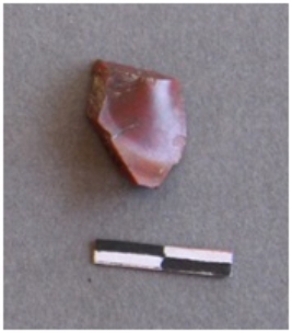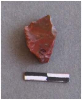| Description / विवरण | It s a jasper fragment with a positive bulb of percussion and a striking platform. |
