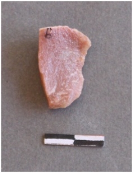 | Description / विवरण | It s a quartz fragment, with a negative bulb of percussion and is pink in color. |