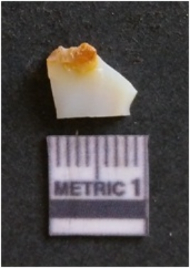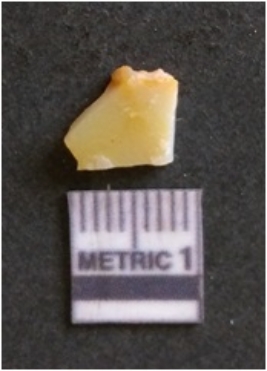 | Description / विवरण | The flake has irregular fracture pattern and sharp flaked edges as a result of lithic knapping activity. The piece is pale, with surface flake scars and a bulbous end. The quartz flake is glassy, and transparent. |