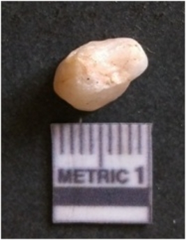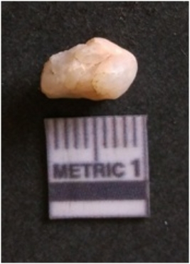 | Description / विवरण | The flake has irregular fracture pattern and sharp flaked edges as a result of lithic knapping activity. The piece is pale, with surface flake scars and a bulbous end. The quartz flake is glassy, and transparent. |