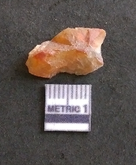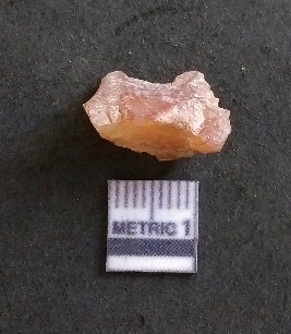 | Description / विवरण | It is a carnelian flake, with a striking platform with bulb of percussion on the ventral side. It is orangish in color, flake edges on the surface with ripple on it due to heavy percussion. |