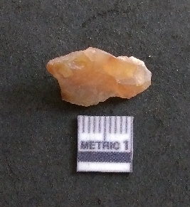 | Description / विवरण | It is a chalcedony flake, with a bulb of percussion on the ventral side. Cortex on one end. |