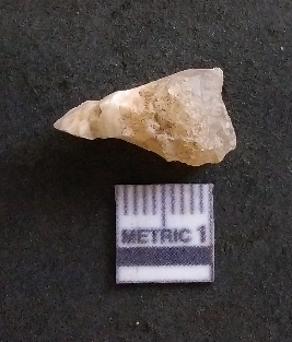 | Description / विवरण | It is a chalcedony flake, with a bulb of percussion on the ventral side. Cortex on one end. |