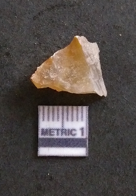 | Description / विवरण | It is a chalcedony flake, with a bulb of percussion on the ventral side. Cortex on one end. |