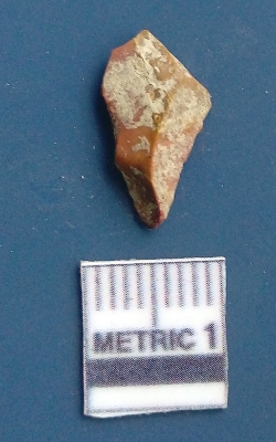 | Description / विवरण | It is a blade flake. The sides are sharp and retouched. It is brownish in colour. The striking platform and the bulb of percussion is clearly visible. The flake scars are clearly seen on the dorsal surface while the ventral surface is plain. The soil incrustations are clearly seen. |