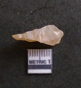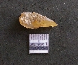 | Description / विवरण | It is a chalcedony flake, with a bulb of percussion on the ventral side. Cortex on one end. |