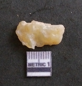| Description / विवरण | It is a chalcedony flake, with a bulb of percussion on the ventral side. Cortex on one end. |