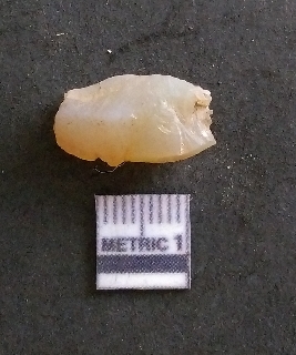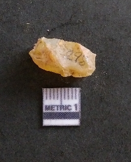 | Description / विवरण | It is a chalcedony flake, with a bulb of percussion on the ventral side. Cortex on one end. |