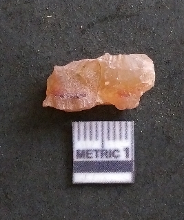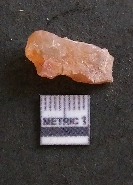 | Description / विवरण | It is a carnelian flake, with a striking platform with bulb of percussion on the ventral side. It is orangish in color, flake edges on the surface with ripple on it due to heavy percussion. |
