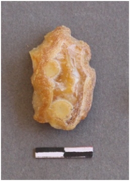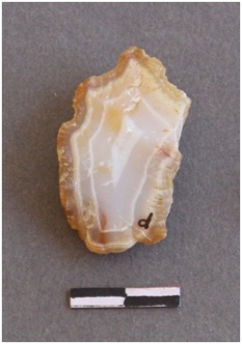 | Description / विवरण | It is a transverse cut chalcedony fragment with concentric layers. |