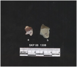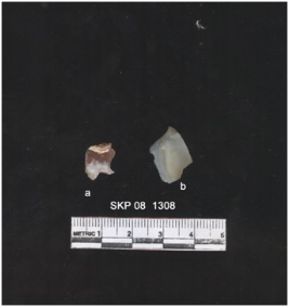 | Description / विवरण | The agate piece quadrangular in shape and shows sharp edges; but bulb is missing. One edges shows fracture. |