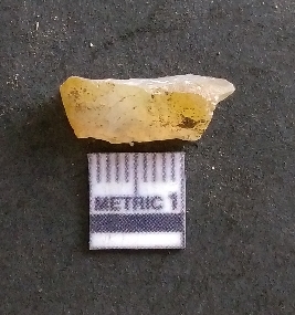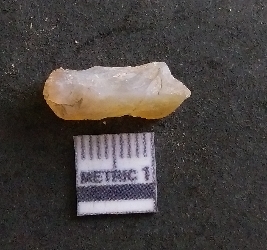 | Description / विवरण | It is a chalcedony flake, with a bulb of percussion on the ventral side. Cortex on one end. |