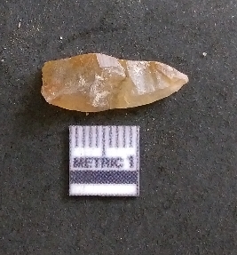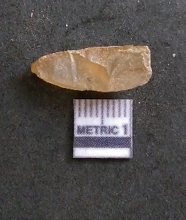 | Description / विवरण | It is a chalcedony flake, with a bulb of percussion on the ventral side. Cortex on one end. |