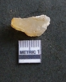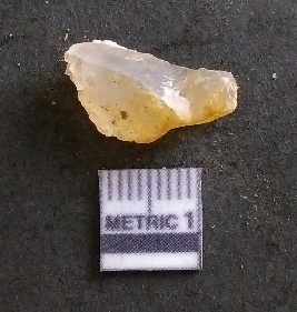 | Description / विवरण | It is a chalcedony flake, with a bulb of percussion on the ventral side. Cortex on one end. |