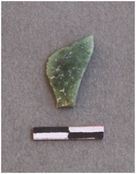 | Description / विवरण | It s a moss agate fragment, with pointed end and negative bulb of percussion. |