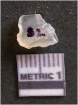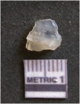 | Description / विवरण | The chalcedony flake is pale in color and translucent in appearance. The piece has s harp flaked ends and a bulbous end due to flaking. The flake has a crypto-crystalline silica matrix. |